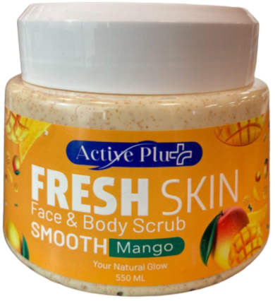 Active Plus Face and Body Scrub Mango 550 ML is a revitalizing exfoliating scrub enriched with mango extract to gently remove dead skin cells and impurities. It helps leave the skin smooth, soft, and refreshed with a pleasant fruity fragrance. Suitable for salon and home use.